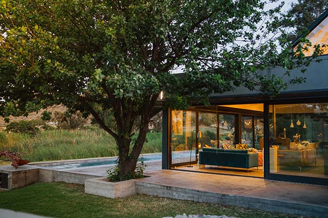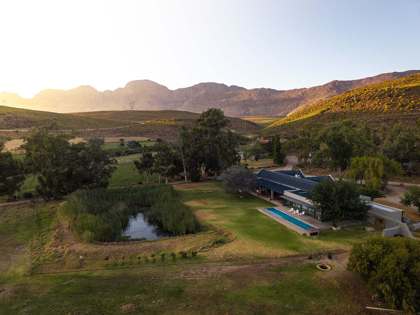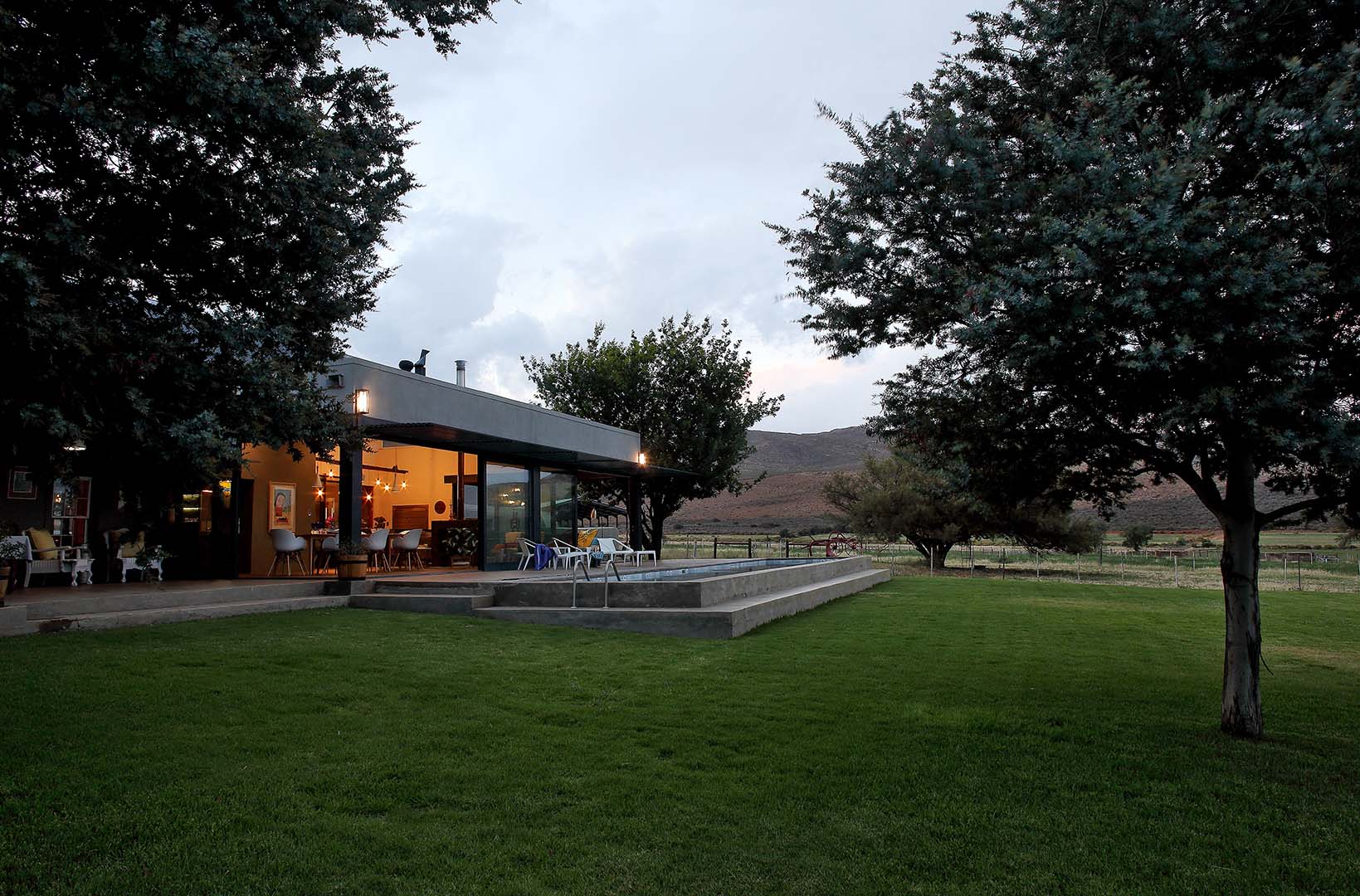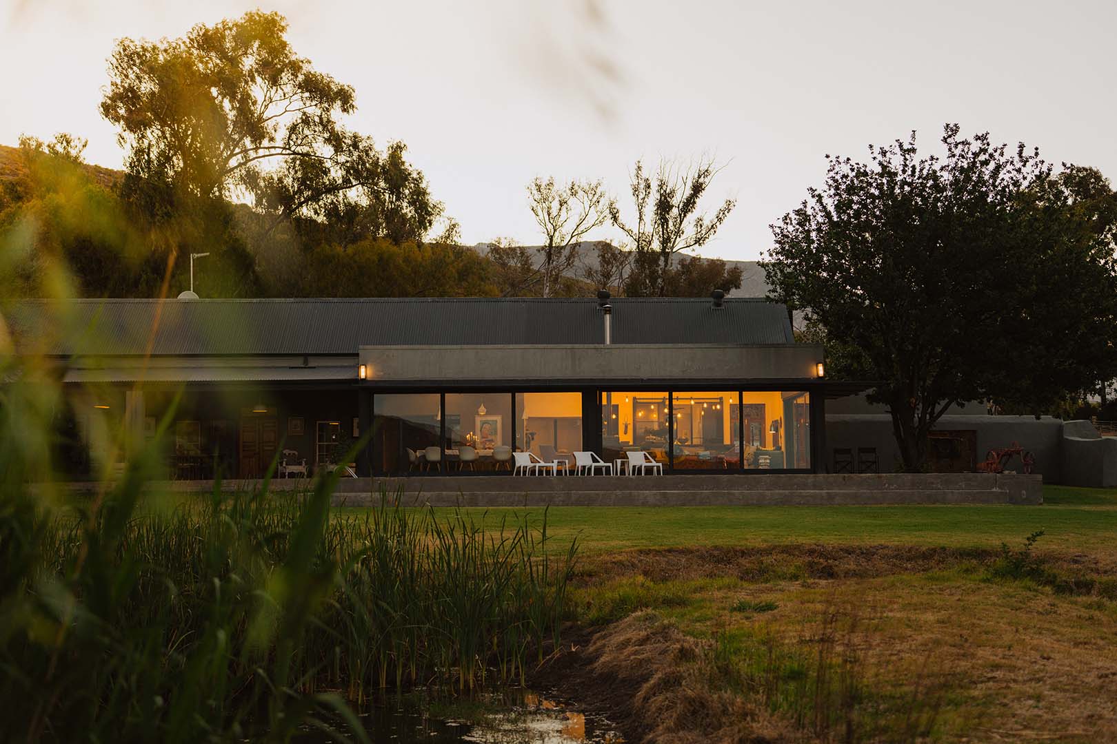 An 1820 farmstead lovingly restored and a modern glass addition that sits gently in the Karoo landscape, using simple forms and honest materials. Deep verandas, framed views and sheltered courtyards create a sequence of still, contemplative spaces that celebrate the region’s vast skies and changing light.
