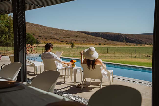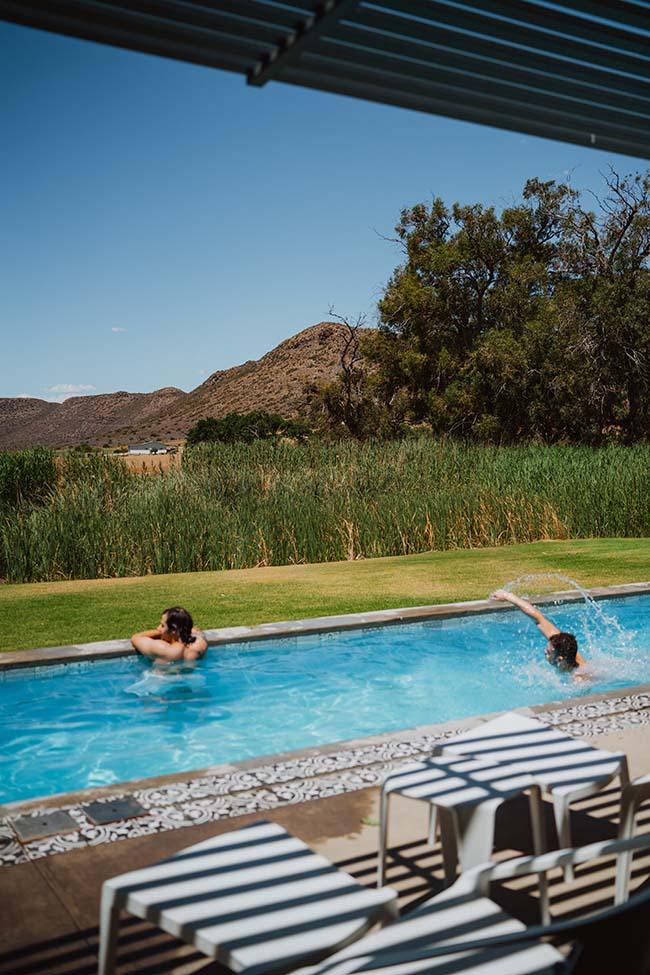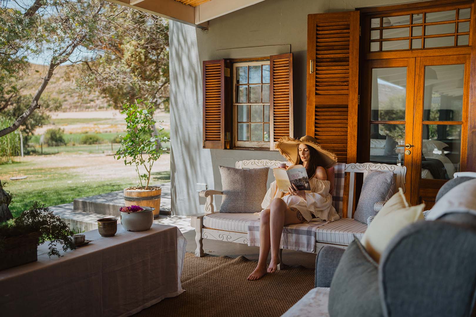 A derelict workers cottage on the farm has been restored to echo the Karoo way of living. Slow afternoons on the verandah with only nature as companion with picture window views of the mountains.