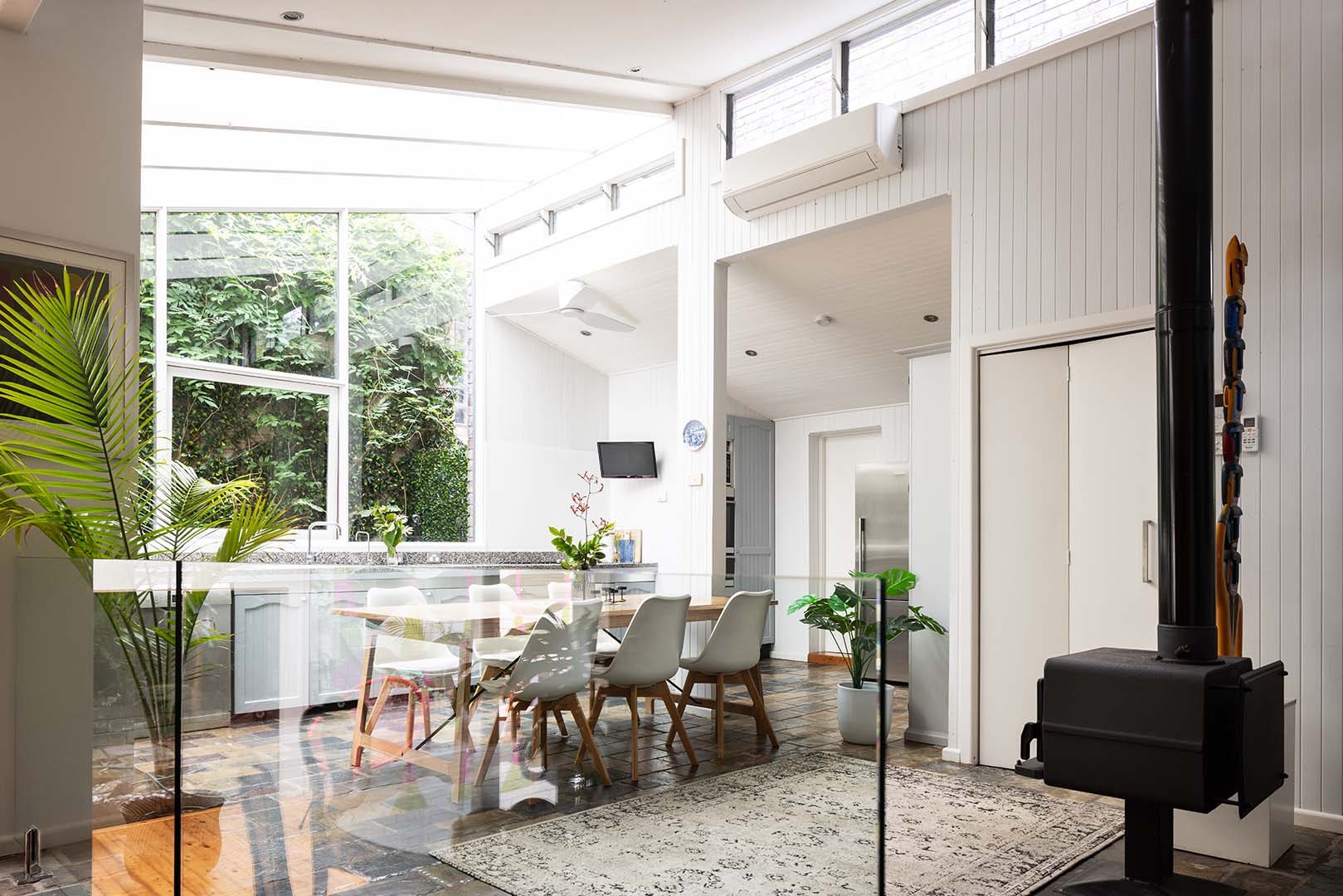 A Pettit & Sevitt inspired Mid century home renovated to reach its full potential for modern day living. Perched on the edge of the sprawling bushland of the Kuringai National Park in a leafy suburb of Sydney’s North shore.
