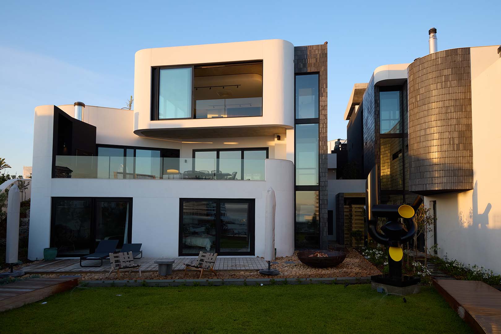 Two houses designed to give privacy but togetherness for the whole family when needed. Ocean views and carefully balanced discussion between art and architecture makes this home special.